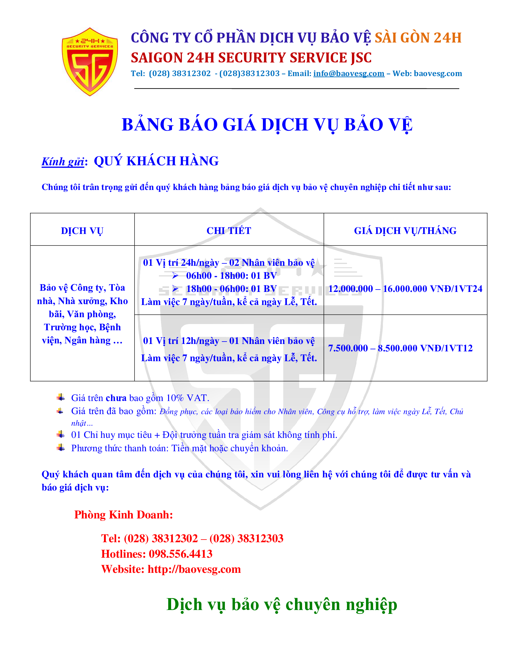 CÔNG TY CỔ PHẦN DỊCH VỤ BẢO VỆ SÀI GÒN 24H